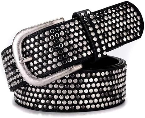 Amazon Co Jp スタイリッシュなパンクベルト ジーンズパンツベルトの男性と女性のための3色の3色リベットのinlaid合金ピンバックルベルト 人気のアクセサリー 色 Black Size 110cm ホーム キッチン
